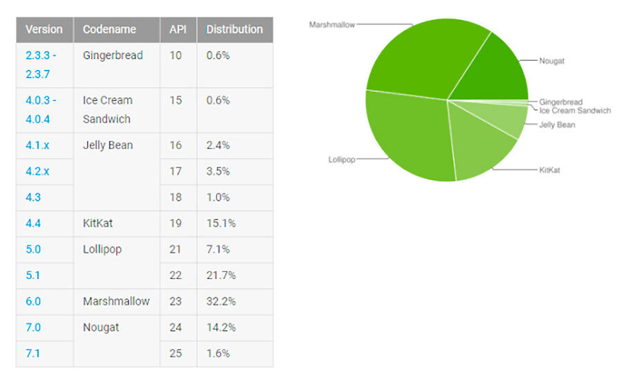 No hay duda de que esto no es muy buena noticia para nuestro sistema: ejemplifica a la perfección la popular fragmentación. Android Marshmallow tiene el honor de ser la versión que posee un mayor número de dispositivos androides. Con otro detalle importante: la siguiente que le pisa los pies es Lollipop, con tres años de antigüedad. En sus dos versiones principales, claro.