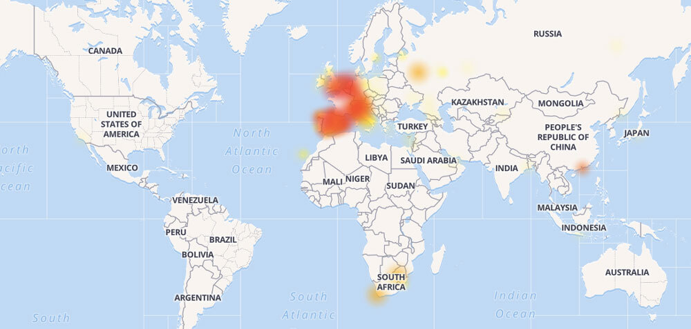 En concreto vemos que afecta a gran parte de España (sobre todo en grandes ciudades como Sevilla, Madrid o Barcelona) y a otros países como Italia o Reino Unido. También la capital rusa parece estar afectada y llama la atención que en Francia no parezca haber ninguna incidencia.