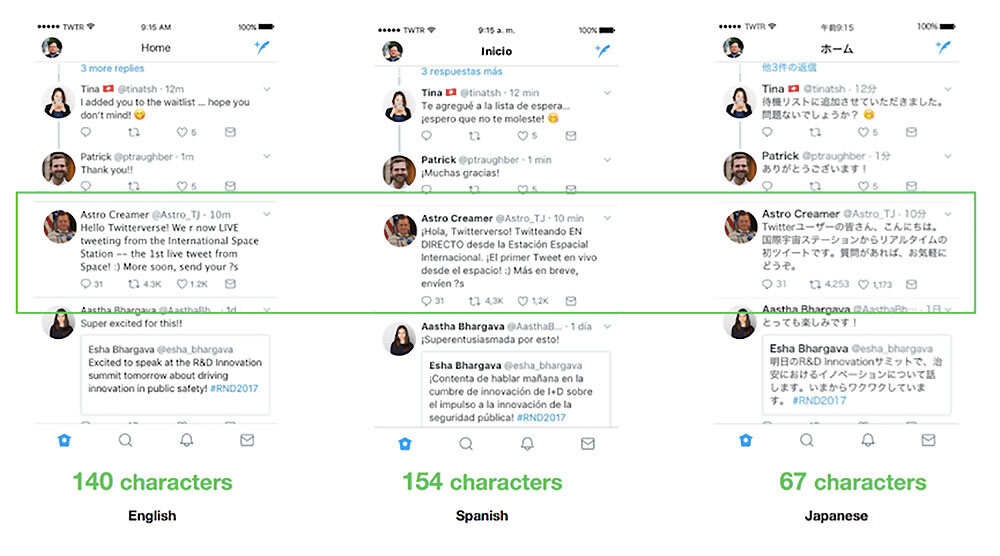 Llevamos viendo pruebas sobre la longitud de los tweets desde hace meses, pero ahora estaríamos ante la definitiva. Así lo comenta la propia Twitter en su blog: han constatado que la longitud actual de los Tweets favorece a algunos idiomas mientras perjudica a otros. ¿Cuál es la mejor solución para este inconveniente? Alargar la extensión para que así no tengamos que andar reduciendo drásticamente cada idea.