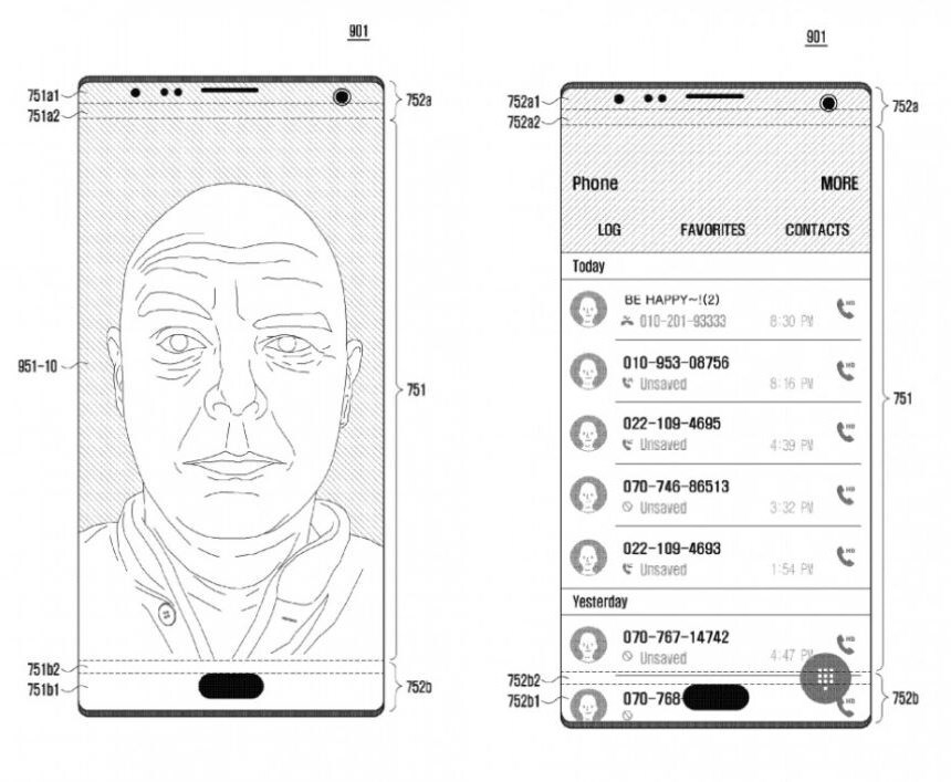 Hoy conocemos dos nuevas patentes de Samsung. En ellas podemos ver como han patentado dos nuevos dispositivos. Uno de ellos tendría un notch similar al que ya vimos en el Essential Phone. La otra patente hace referencia a un móvil que llevaría el concepto de «todo pantalla» al sentido más literal de la palabra.