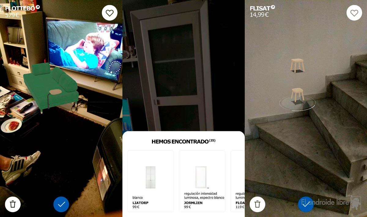 Una de las aplicaciones que mejor aprovechan la realidad aumentada es Ikea Place, una app que salió primero en iOS aprovechando ARKit de Apple. Su funcionamiento es muy práctico: permite colocar en casa los muebles del Ikea de manera virtual. De esta manera sabremos si encajan o no en la decoración sin necesidad de comprarlos, transportarlos y pelearnos con su montaje.