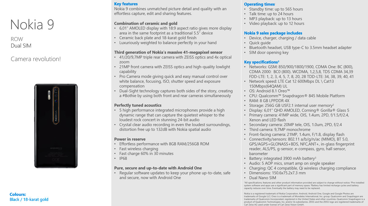 Pongámonos en situación. Pocos días después de que se presentara el Huawei P20 Pro, de que salieran las primeras reviews de su triple cámara y de que el zoom del dispositivo alucinase a todos los que andan probándolo, va una web finlandesa y filtra las características completas del Nokia 9. Una configuración de cámara similar, una foto que parece recién salida de Photoshop y una fecha de publicación para la fuente que encaja con el April’s Fools Day.