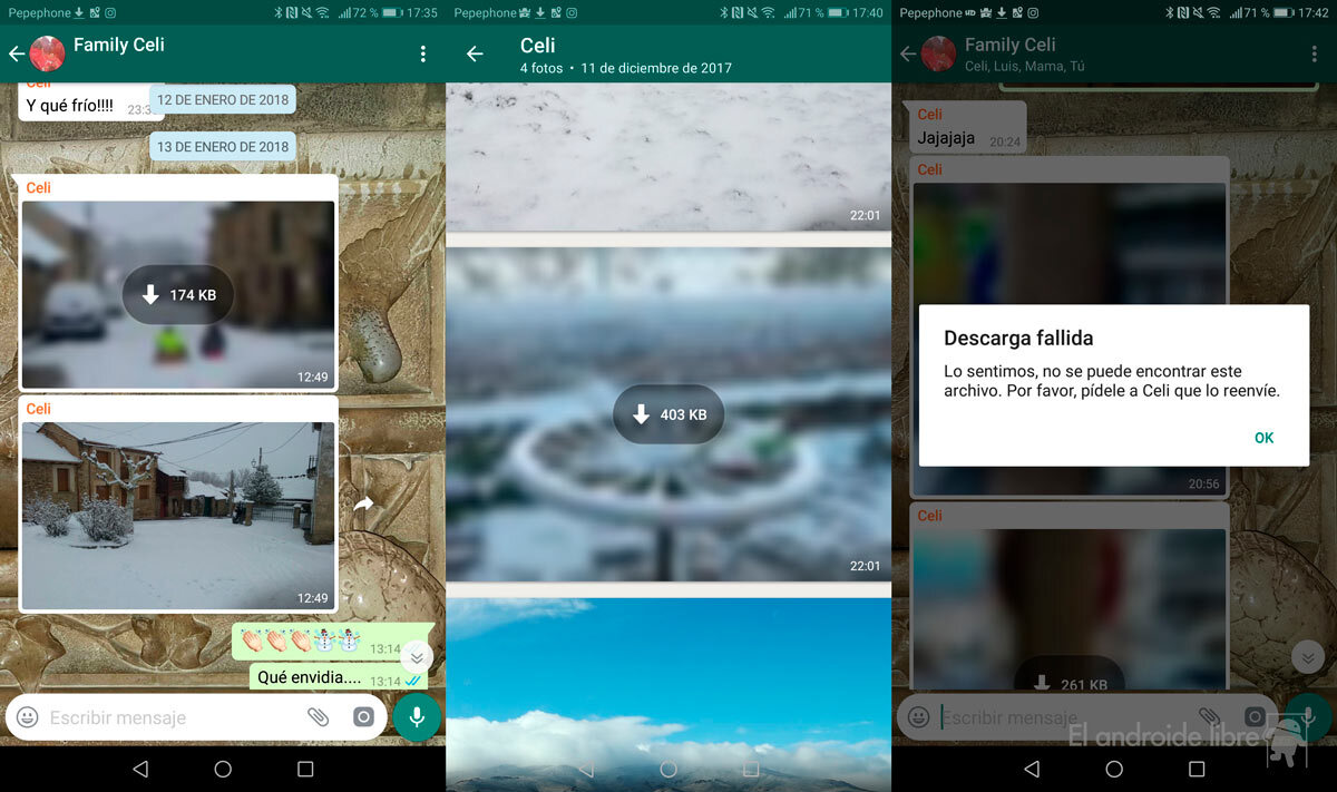 WhatsApp retiene las imágenes y los vídeos en sus servidores para que los bajes de nuevo si los pierdes del móvil