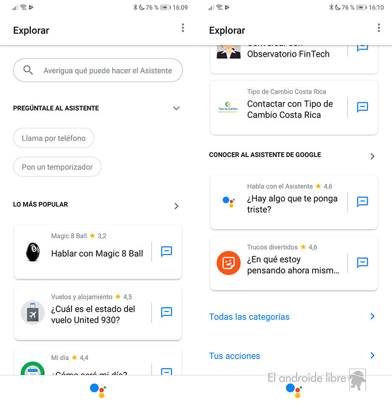 La sección en la que podemos ver las apps conectadas está en la zona Explorar, al final de la pantalla. Para verla hemos de lanzar el asistente y luego: