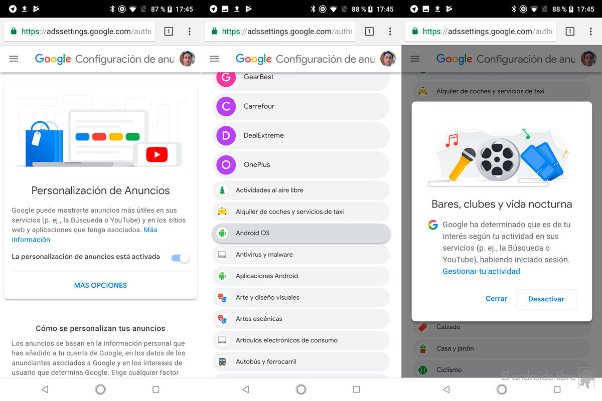 Con la Personalización de anuncios tienes una herramienta muy potente para limitar los anuncios que se muestran en todas las páginas por las que navegas, en YouTube y también en las aplicaciones Android. No quiere decir que quitando todos los intereses dejes de ver publicidad, pero sí que limitarás las campañas obteniendo una experiencia más relajada. Y, de paso, limitarás el conocimiento que tiene Google de ti.