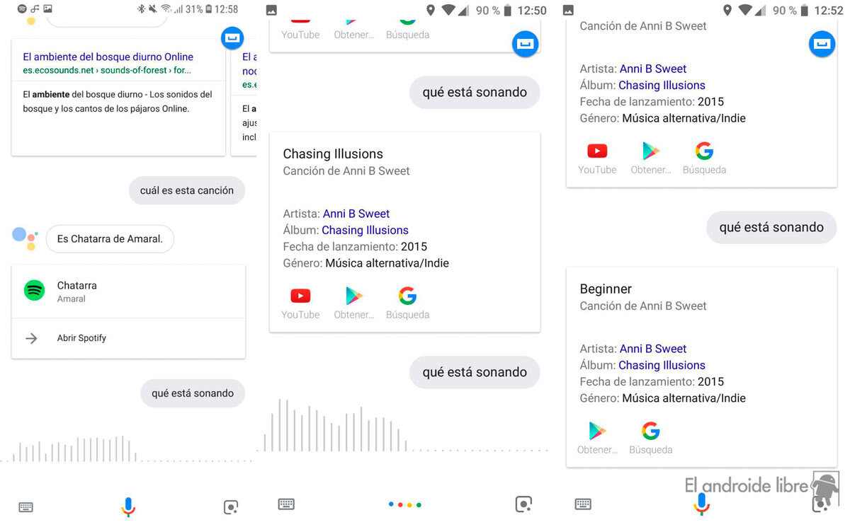 El reconocimiento de música a través del asistente no es nada nuevo ya que lleva unos meses funcionando en inglés. Bastaba con pedírselo para que Google Assistant analizase la música y devolviera los resultado; algo que ahora es mucho más sencillo gracias a que la compatibilidad con el español ya está activa. Aunque eso sí, aún está en pruebas y no funciona igual en todos los dispositivos.