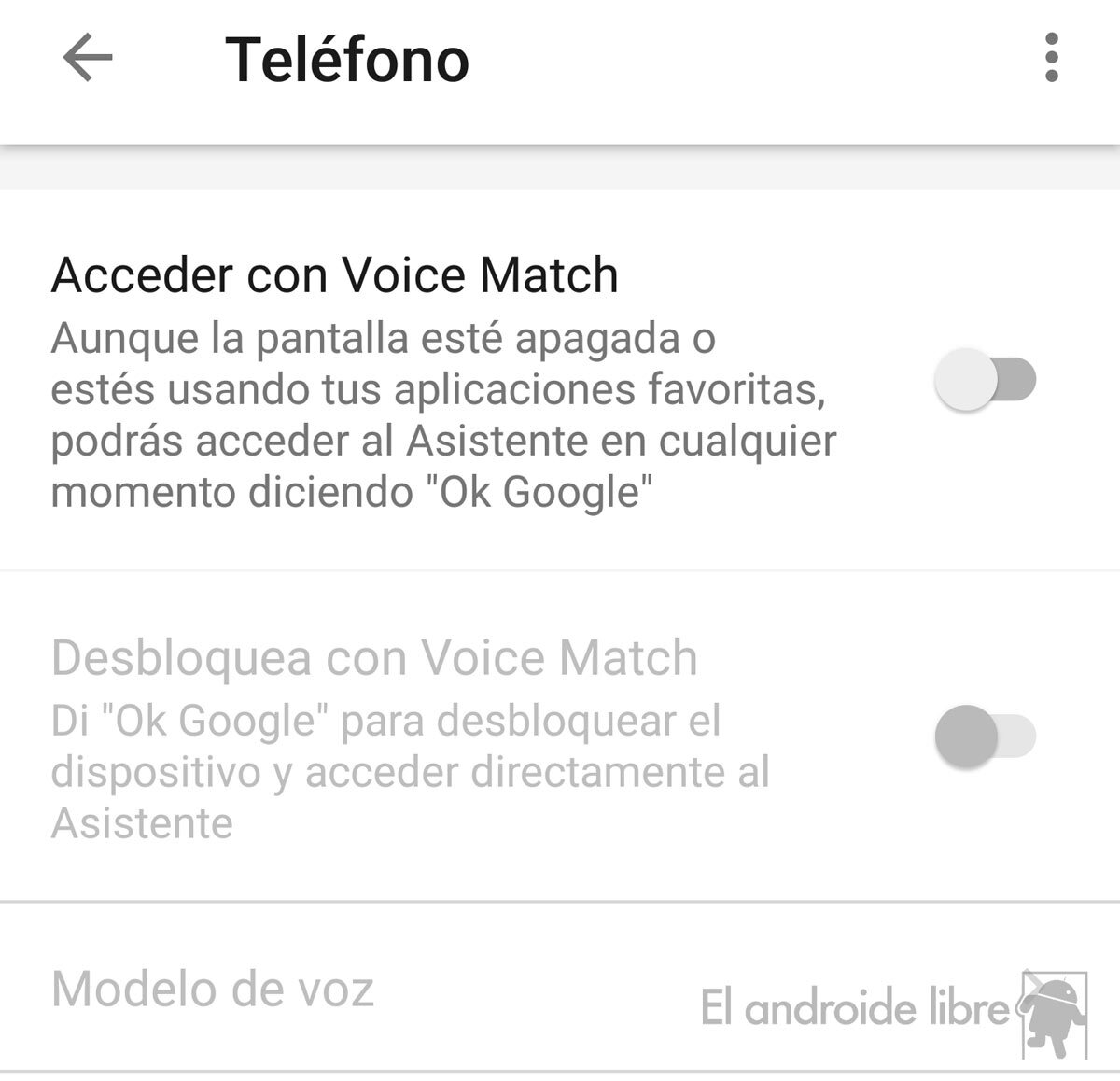 La configuración de activar el móvil por voz aparece desactivada en algunos Android
