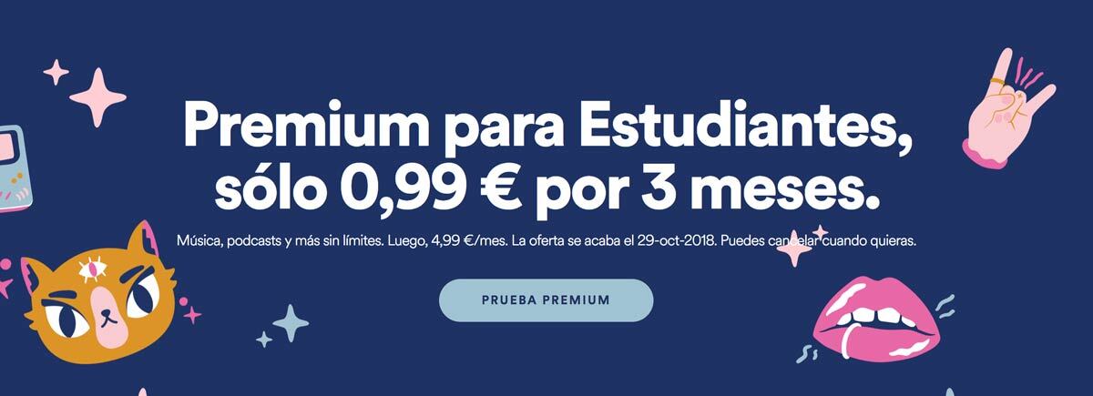 3 meses de Spotify premium por 0,99 euros si eres estudiante
