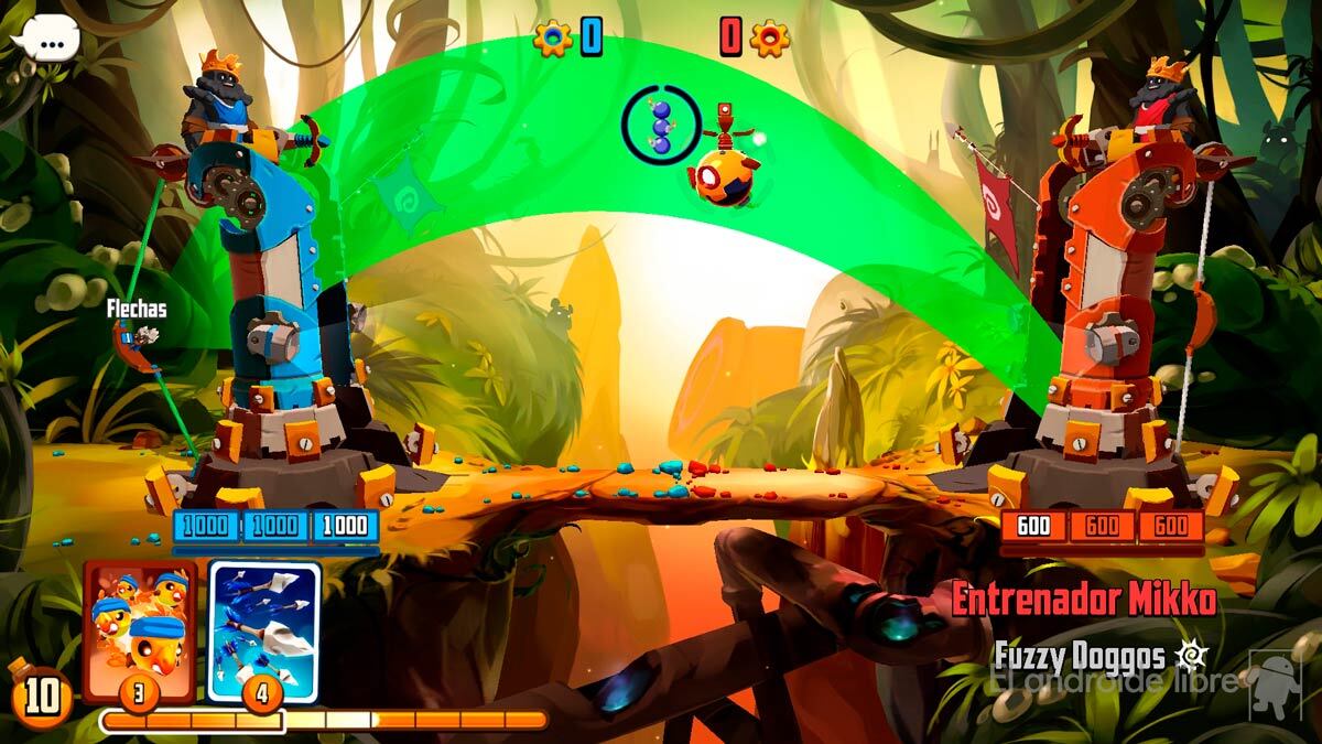 El tutorial de entrada al juego lía un poco por todos los conceptos que incluye, pero no camina a demasiada distancia de otros títulos, como el ya mencionado Clash Royale. Tenemos nuestra torre; y la enemiga, a la que debemos vencer, está del otro lado del puente (¿te suena de algo?). La perspectiva cambia ya que los ataques son en horizontal en lugar de en vertical. Disponemos de diversas cartas que potencian el ataque, la defensa, otras que combinan ambos elementos… Y se irán recargando dependiendo del valor de cada carta.