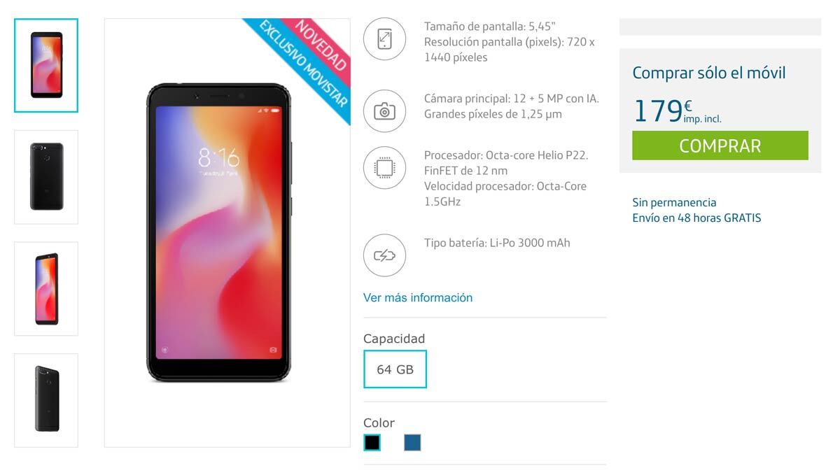 Movistar España distribuirá en exclusiva el Xiaomi Redmi 6 de 64 GB