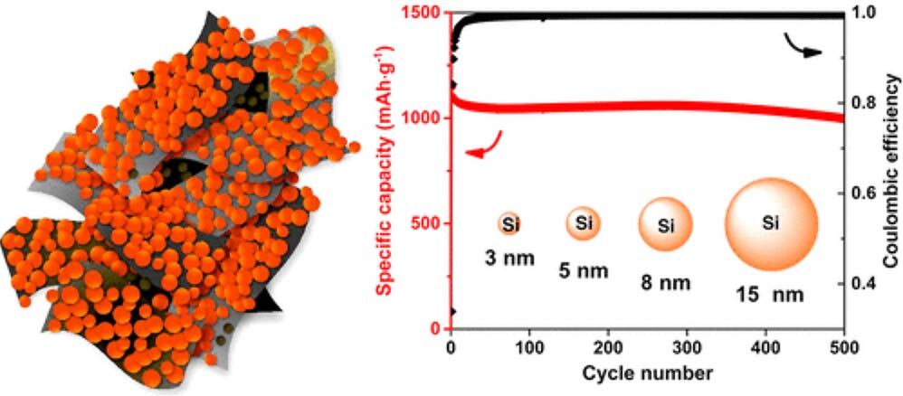 Los investigadores encontraron que cuanto más pequeñas son las partículas de silicio más estable es su comportamiento y mejor resisten al sufrido desgaste químico que supone la constante carga y descarga de las baterías. Incorporando dichas nanopartículas de silicio a un aerogel de grafeno se consigue el sustituto perfecto de los electrodos de grafito; logrando una mayor capacidad en el mismo espacio que ofrecen las baterías de ion litio tradicionales.