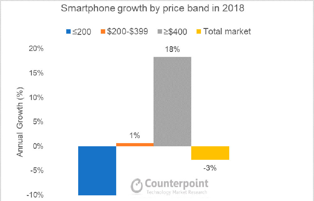 Los smartphones de más de 400 dólares crecieron un 18 % durante 2018