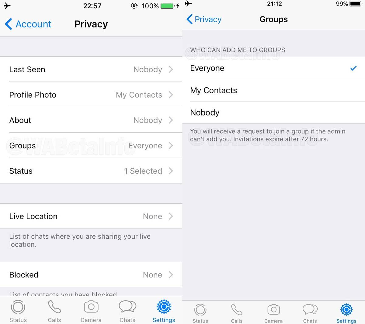 Mediante un selector en las opciones de privacidad cualquiera podría elegir los contactos que le pueden invitar a grupos de WhatsApp. Las opciones serían: