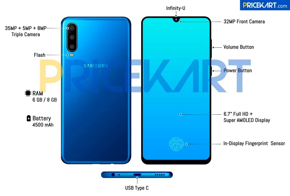 Samsung Galaxy A60, pantalla Infinity-U y lector de huellas bajo el panel