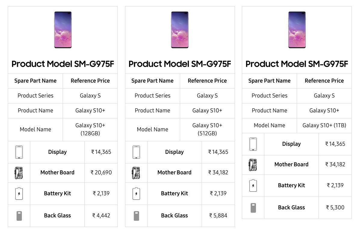 De esta manera resulta posible saber que la pantalla del Samsung Galaxy S10+ cuesta 183 euros, por ejemplo; o 27 euros la batería. Debes tener en cuesta que estos costes no incluyen los gastos de reparación que Samsung cobra en su servicio de soporte y que las piezas no pueden encargarse para realizar la reparación en casa: Samsung nunca venderá los recambios al público particular. Otro detalle a destacar es que el coste reflejado en la web de Samsung India se aplica al modelo más caro de la serie; por lo que el recambio podría salir más económico si tu móvil es el modelo más barato.