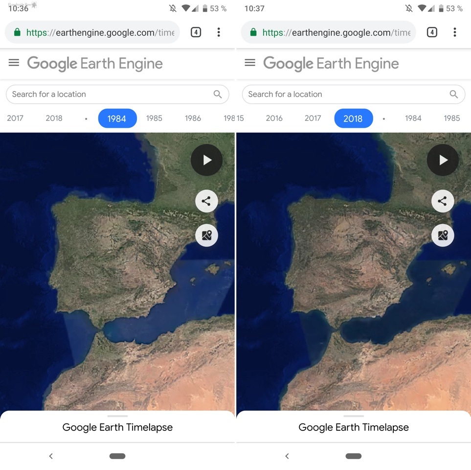 Un par de años más tarde, Google ha anunciado que esta impresionante aplicación ya se encuentra disponible en dispositivos móviles, permitiéndonos conocer cómo ha cambiado nuestro planeta en las últimas décadas.