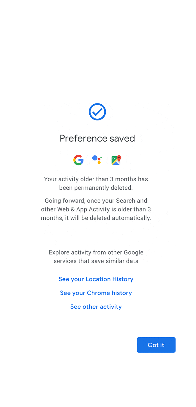 Aunque no es algo que preocupe a la mayoría de las personas que usan los productos de Google, si un usuario quería, hasta ahora podía eliminar sus datos yendo a su perfil. Ahí era posible eliminar nuestro historial de navegación, los datos que las apps tienen de nosotros y nuestro historial de localizaciones.