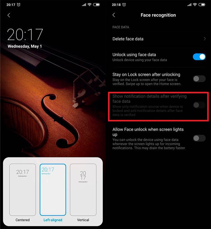Otra de las opciones incluidas es la de enseñar las notificaciones en la pantalla de bloqueo solo si el desbloqueo facial ha reconocido el rostro. De esta manera podrás leer todos los avisos de las apps sin entrar en MIUI; y sin que se ponga en juego tu privacidad ya que solo se mostrarán las notificaciones si eres tú quien ha desbloqueado el móvil.