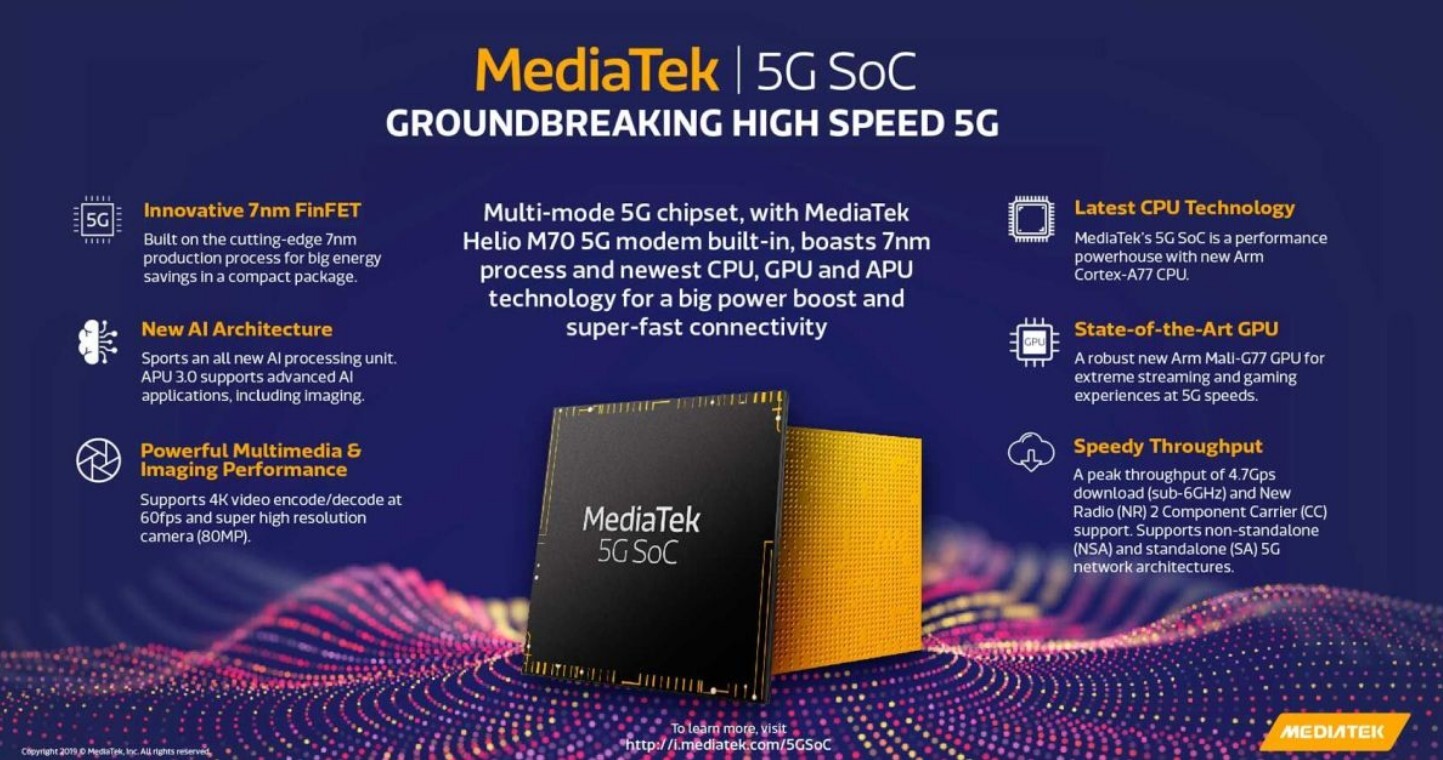 El nuevo MediaTek Helio M70 es uno de los procesadores más ambiciosos creados por el fabricante de chips. Este procesador está fabricado en un proceso de fabricación de 7 nanómetros, un proceso de fabricación a la altura del Apple A12, Snapdragon 855 o Kirin 980.