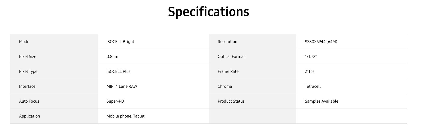 Además de la resolución, tenemos más información, y es que el sensor de 64 Mpx no es otro que el Samsung ISOCELL GW1, con una óptica de 1/1.72″ y un tamaño de píxel de 1.6 μm según el propio CEO.