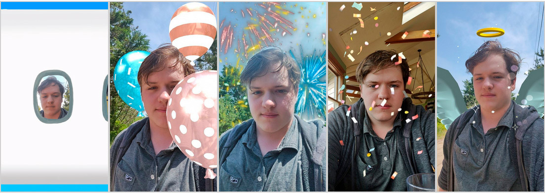 Son cinco filtros los que estarán disponibles en su lanzamiento: avión, globos, fuegos artificiales, confetti y ángel.