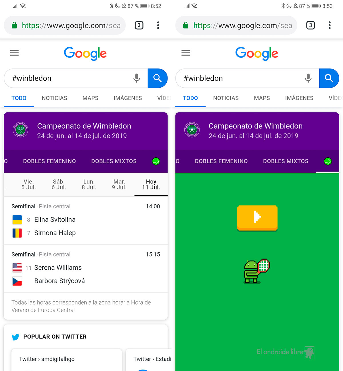 El último de ellos es un sencillo juego de tenis que podremos disfrutar tanto en el móvil como en los dispositivos de escritorio ya que para activarlo sólo debemos realizar esta búsqueda, bien en la aplicación de búsqueda de Google o en cualquier navegador web: