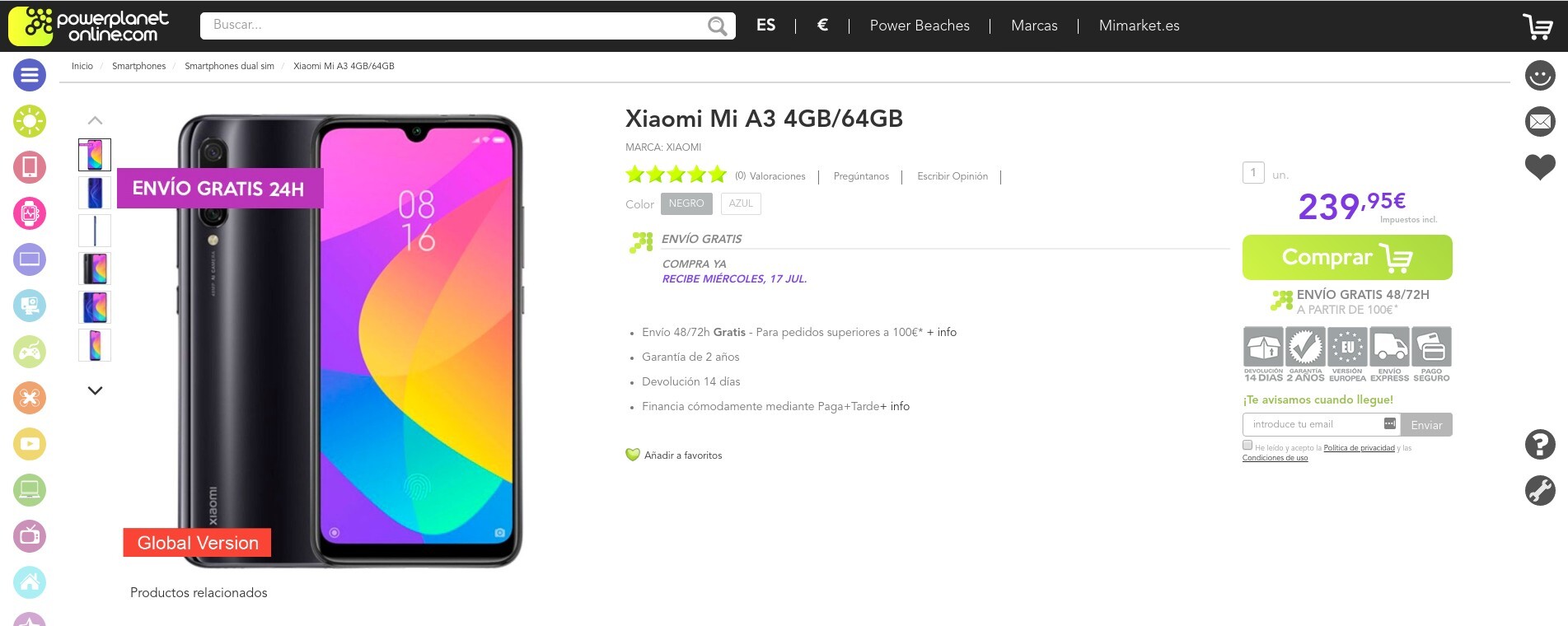 En estos momentos no podemos confirmar que sea seguro comprar el Xiaomi Mi A3. En esta situación hemos puesto como ejemplos dos tiendas españolas, pero nuestra recomendación trasciende a cualquier otra tienda online en la que lo puedas comprar, incluyendo Amazon, donde cualquiera puede vender a través del marketplace.
