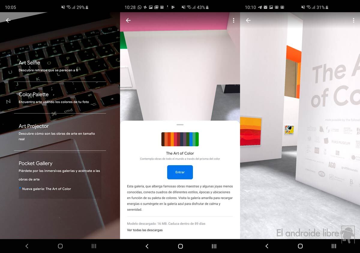 La realidad aumentada de Google ha demostrado en multitud de ocasiones lo fácil que resulta mezclar contenido desarrollado en 3D con entornos reales gracias a la cámara del teléfono. Y Google Arts & Culture, la aplicación dedicada a fomentar la cultura, saca gran partido de ello: esta app estrena una galería de bolsillo que se encuentra accesible a través de la pantalla.