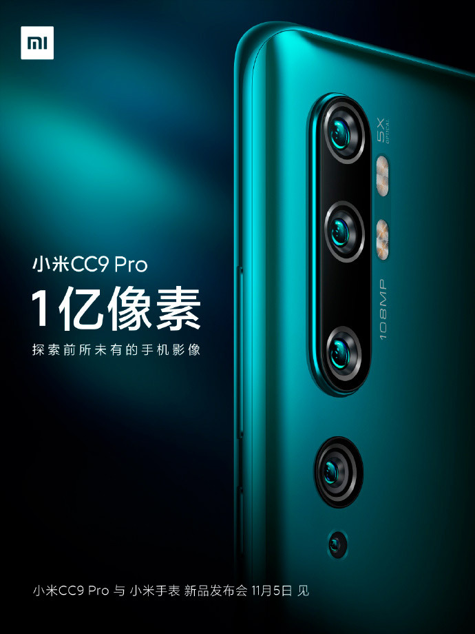 Xiaomi ha confirmado su nuevo busque insignia, el Xiaomi CC9 Pro, que tendrá 5 cámaras traseras, una de ellas con 108 Mpx y otra con zoom óptico 5x.
