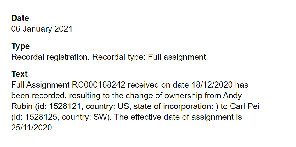 Gracias a 9to5 Google hemos podido conocer una noticia que nos desvelaría el futuro del cofundador de OnePlus, al haber encontrado un documento en las oficinas de propiedad intelectual de Reino Unido. En dicho documento conocemos un traspaso de la marca Essential por parte de Andy Rubin hacia Carl Pei.