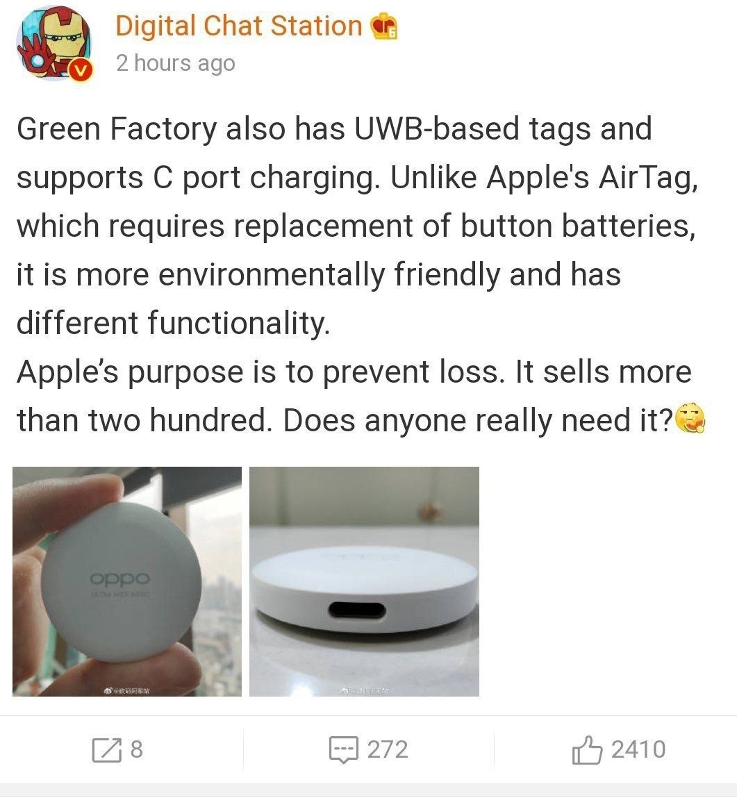 OPPO trabaja ya en su propia alternativa a las AirTags de Apple y su alternativa va a contar con un puerto USB-C a diferencia de las de Apple.