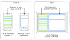Otra cosa bastante interesante es que la típica barra superior de Honeycomb será portada a los teléfonos, así como los “fragmentos”. En resumen, los desarrolladores tendrán que crear diseños de una sola pantalla para teléfonos, y multipantallaspara las tablets.