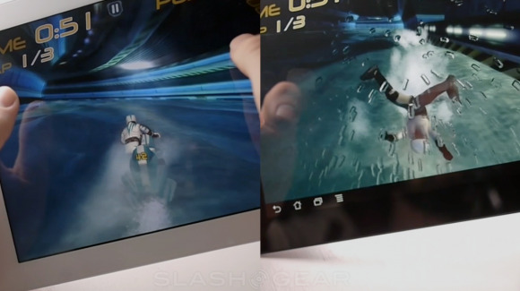 Si hay dos juegos que exploten las posibilidades de los procesadores gráficos de estas dos maravillas de la tecnología son Riptide GP y Shadowgun, sin duda alguna. Nuestros colegas de Slashgear han hecho una comparativa mano a mano de cómo se ven estos juegos y cómo se disfrutan en los potentes dos núcleos de la tablet de Apple y en los cuatro núcleos del buque insignia de las tablets Android, con estos dos juegos, y creemos que puede ser muy interesante para vosotros si no os decidís por una u otra del todo (aunque en el caso de la Transformer no podréis adquirirla estas navidades aún…). Vamos a ello: