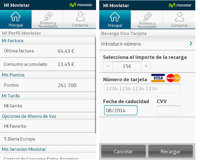 Entre las opciones que permiten para los clientes de contrato, tenemos que destacar la de ver los detalles de nuestra factura así como el consumo acumulado. Si bien en primera instancia esto puede ser lo que con más habitualidad haremos, también podremos cambiar la domiciliación de nuestras facturas o mismo conocer los puntos que llevamos acumulados. Además, también nos permite realizar un canje de puntos desde la propia aplicación.