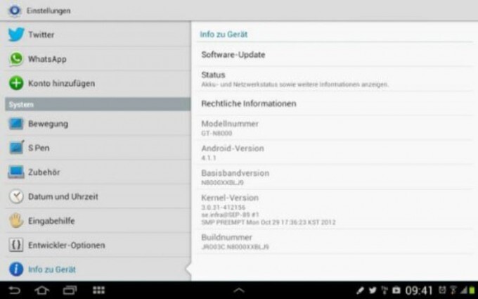 Desde Sammobile nos llega una captura que confirma que ya ha empezado el proceso de actualización, y que muy probablemente no tarde en llegar a todos los poseedores de esta tablet. Por el momento la actualización está llegando a Alemania, via OTA y con un peso de 300MB y la versión es la 4.1.1.