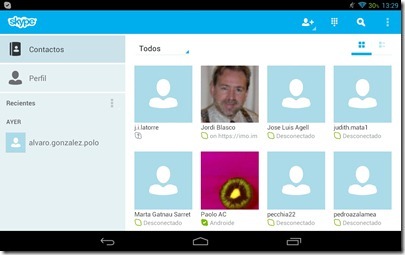 Tal como comentábamos, el principal atractivo de esta nueva versión de Skype es su total integración con las tablets Android. Actualmente la he probado con la tablet Nexus 7 y realmente es una delicia. Se nota en este caso que la aplicación ha sido diseñada pensada para la tablet.