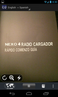 La primera versión era un claro port de iOS. Hoy han actualizado la aplicación mejorando la traducción instantánea y añadiendo nuevos idiomas para traducir, a la vez que corrige varios errores. Uno de los errores supuestamente corregidos es ese molesto parpadeo que hacía tan difícil usar la aplicación. Asimismo, han añadido la interfaz Holo que tanta falta hace en muchas de las aplicaciones que pueblan Google Play.