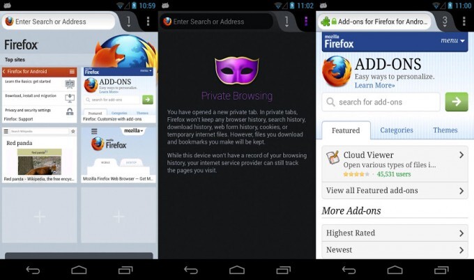 Como cada mes, Mozilla actualiza su navegador de escritorio y también nos trae la nueva versión móvil de Firefox.  Esta actualización viene cargada de novedades interesantes: navegación privada y  personalización de sitios frecuentes.  Además  han implementado nuevos codecs de audio para las versiones de móviles con Gingerbread y Honeycomb (sí, alguno hay).