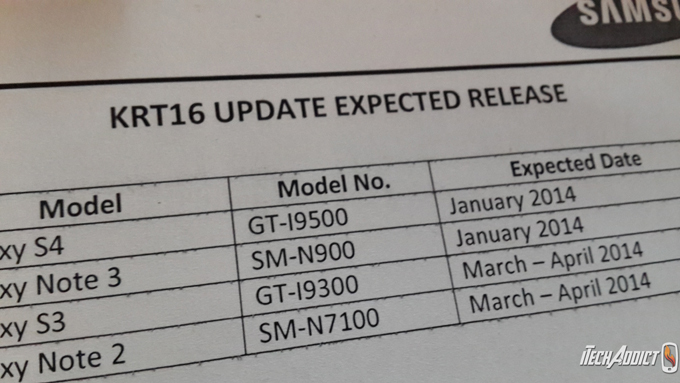 En concreto, en un documento interno que han conseguido en iTechAddict, se indica que los últimos buques insignia de Samsung, el Galaxy S4 y el Galaxy Note 3 actualizarían a la última y dulce versión de Android 4.4 KitKat en Enero de 2014, por lo que sus usuarios no tendrían que esperar mucho más y el próximo mes podríamos ver un comunicado oficial que anuncie esta actualización.