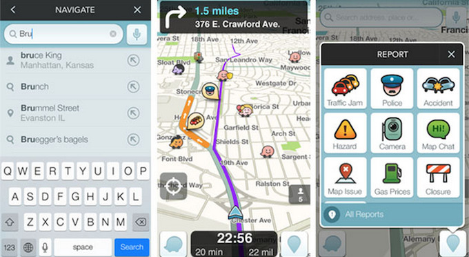 El menú principal ha sido rediseñado, ahora es más fácil editar los «waypoints» y han añadido más iconos nuevos para hacer click rápidamente en los mapas y ver por ejemplo información del tráfico o amigos cercanos. Se incluye también Waze Navigate, para encontrar gasolina, y una bandeja de entrada más completa.