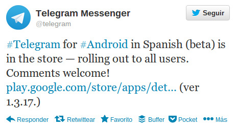 Sin duda, una gran noticia para los millones de personas que hablan este idioma y se decidan a probar Telegram. Podéis descargar la aplicación totalmente gratis desde Google Play. ¿Qué os parece a vosotros Telegram? ¿la usáis en vuestro entorno?.