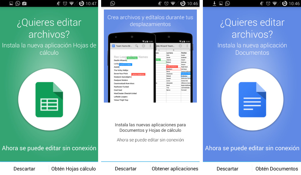 Esta semana ha habido bastante movimiento en cuanto a actualizaciones de Google Apps, pero además dos más se han incorporado a la lista en Play, Docs y Sheets, como ya os contamos. Al principio hubo un poco de confusión ya que las opciones para crear y visualizar documentos y hojas de cálculo ya estaban disponibles en la App de Drive, por lo que no tenía demasiado sentido crear aplicaciones separadas para lo mismo.
