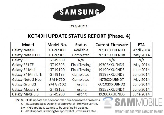 Muchos dispositivos están pendientes de cualquier información posible para su actualización a KitKat. Hoy os traemos una filtración de SamMobile en la que se muestra el roadmap de actualizaciones para los principales dispositivos de Samsung.