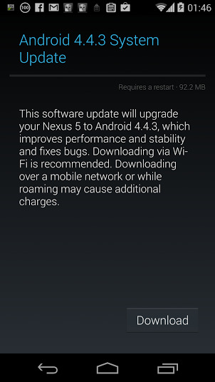 Descargar OTA Android 4.4.3 Nexus 5 (92MB)