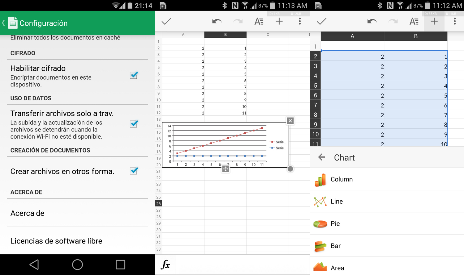 Hojas de Cálculo para Android añade gráficos, fórmulas, autorelleno y más [APK]
