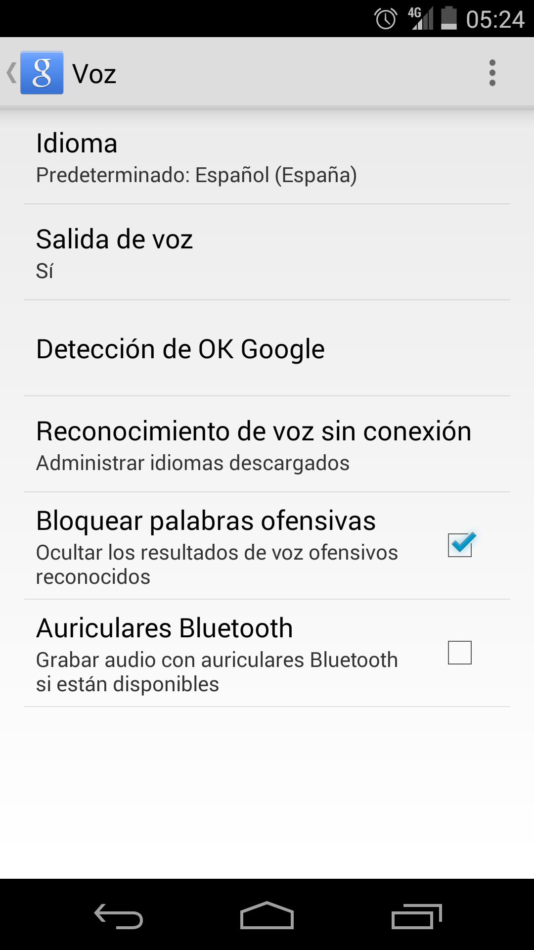 Para activarlo tendremos que ir a Ajustes de Google > Voz > Detección de OK Google. El funcionamiento es idéntico al inglés, salvo que reconocerá nuestro acento español. Las voces de Google Search también serán en español.