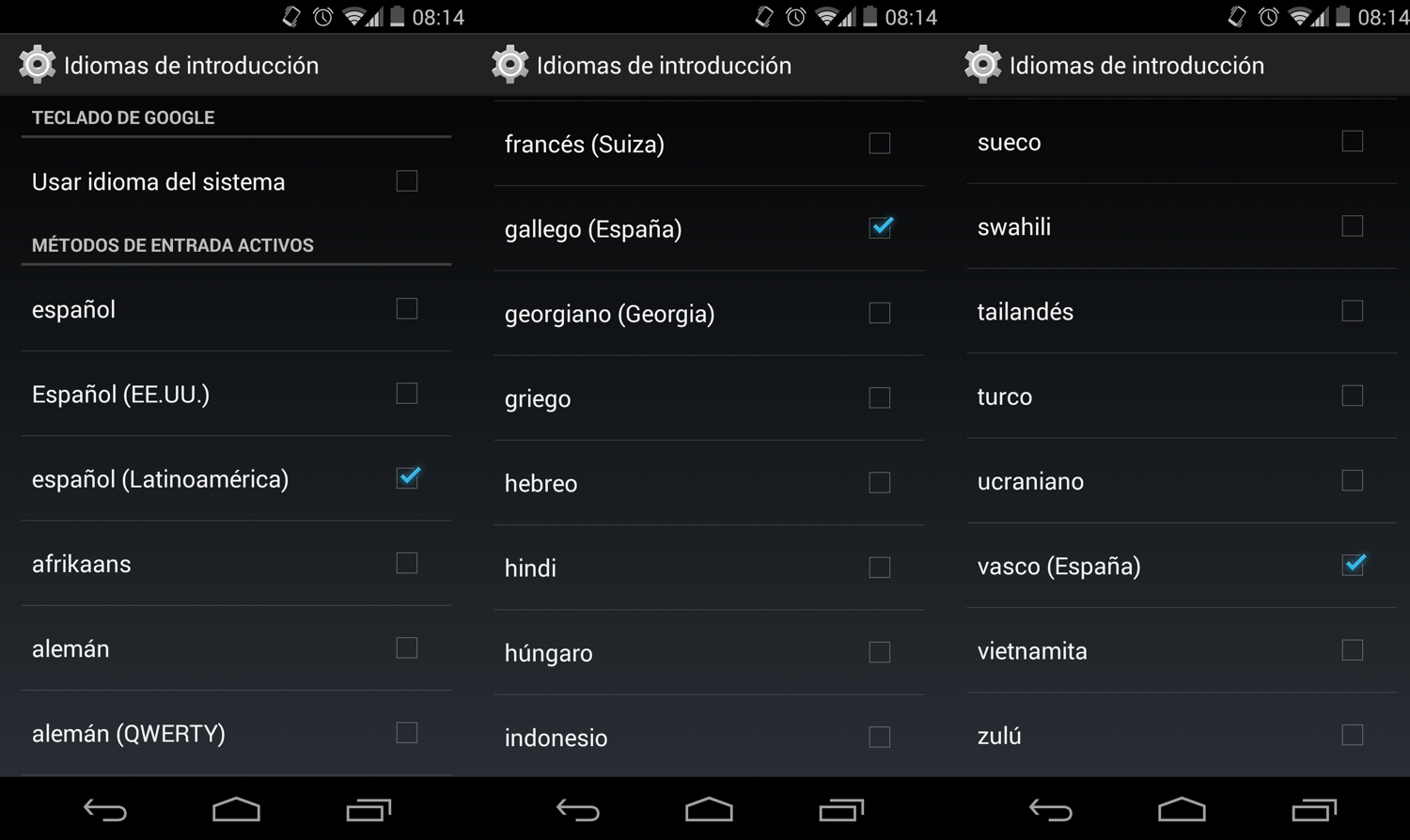 Muy buenas noticias para gallegos, vascos o latinoamericanos. Por fin el teclado de Google permite seleccionar esos idiomas como predefinidos. Esta opción se incorpora en la versión 3.1.