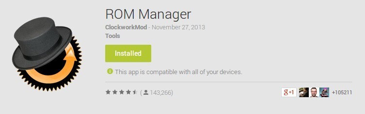 Nacida en el seno de XDA y destinada especialmente a la gestión de ROM modificadas en Android. ROM Manager es un gestor para ROMs cocinadas genial y que a mi personalmente me gusta mucho. Una interfaz cuidada, función para descargar, flashear e instalar Google Apps con sólo pulsar un botón. Opción de instalar fácilmente un custom recovery como ClockWorkMod. En fin, una aplicación «must-have» para usuarios root también.