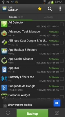 Si no tenemos accesso root podremos utilizar la aplicación App Backup & Restore. Esta aplicación es gratuita y nos permitirá ver un listado con todas las aplicaciones, de las cuales podremos crear una copia de seguridad del estado actual con el botón Copia de Seguridad. La copia podrá hacerse en el dispositivo, en la tarjeta SD o en Google Drive.