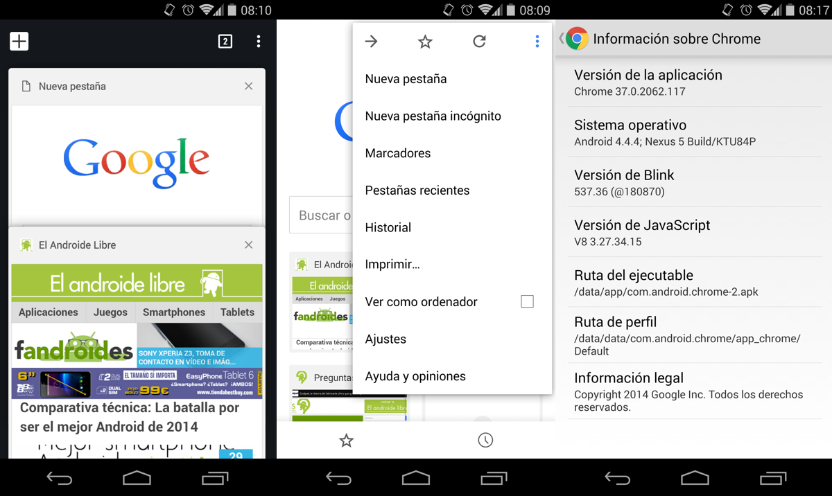 Ya habíamos visto la beta de Chrome 37 para Android. Ahora la versión estable está disponible con las mismas mejoras. Principalmente estéticas y es que se introducen varios elementos del Material Design, si bien no es el estilo final, sí que le da un toque mucho más acorde a lo visto en el pasado Google I/O.